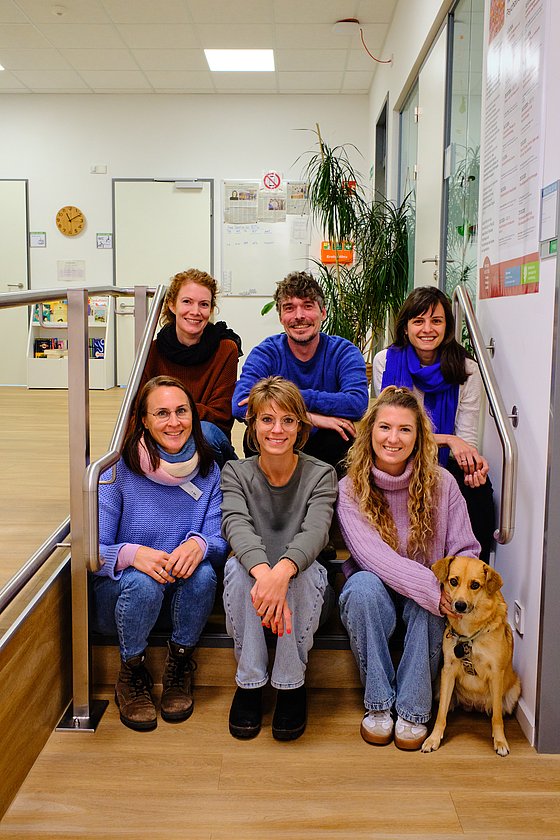 Wir, das sind unsere Lehrtherpeut*innen, welche durch unsere vierbeinigen Helferinnen (Mira und Wanda) unterstützt und durch die stellv. Ambulanzleitung (Dr. Anna Ball), die Lehrstuhlinhaberin und Leiterin der Hochschulambulanz (Prof. Dr. Aleksa Kaurin) gefördert werden.