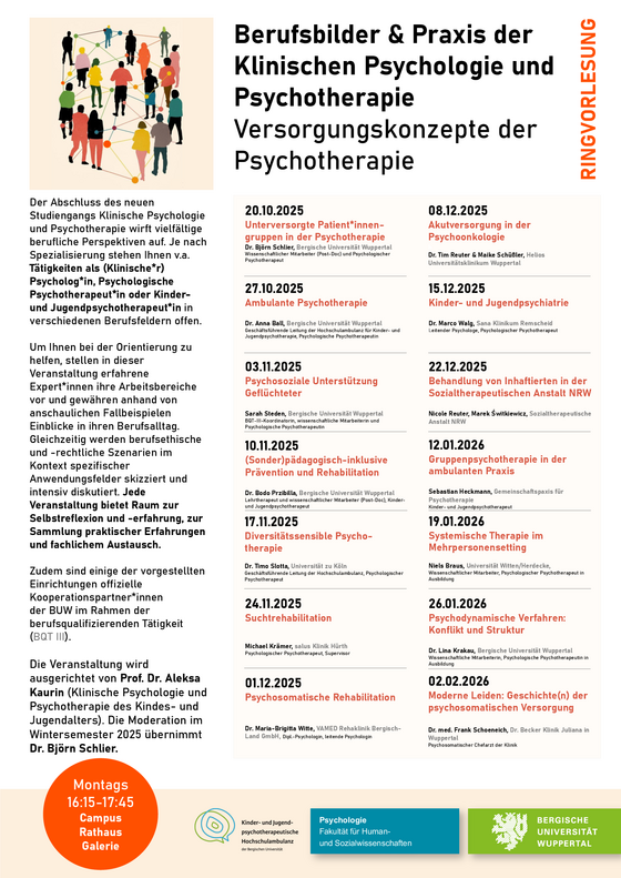 Ringvorlesung "Versorgungskonzepte in der Psychotherapie" im Wintersemester 2025/26